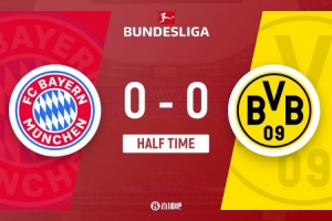 体育资讯4月13日讯 北京时间4月13日00:30,德甲第29轮拜仁迎战多特的比赛在安联竞技场进行,上半场拜仁攻势如潮,凯恩头球造险,多特0射正,科贝尔献精彩扑救,半场结束,拜仁0-0多特。